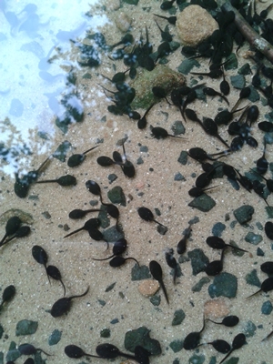 Oder an den drei Weihern. Dort ist zu jeder Jahreszeit etwas anders, was man entdecken kann. In diesem Fall die Entwicklung einer Kröte.